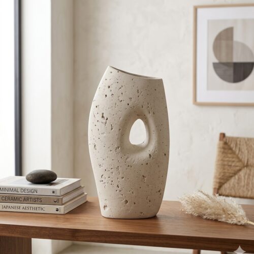 Modern Black Sculptural Vase and Bowl Set – Unique Resin Textured Decor