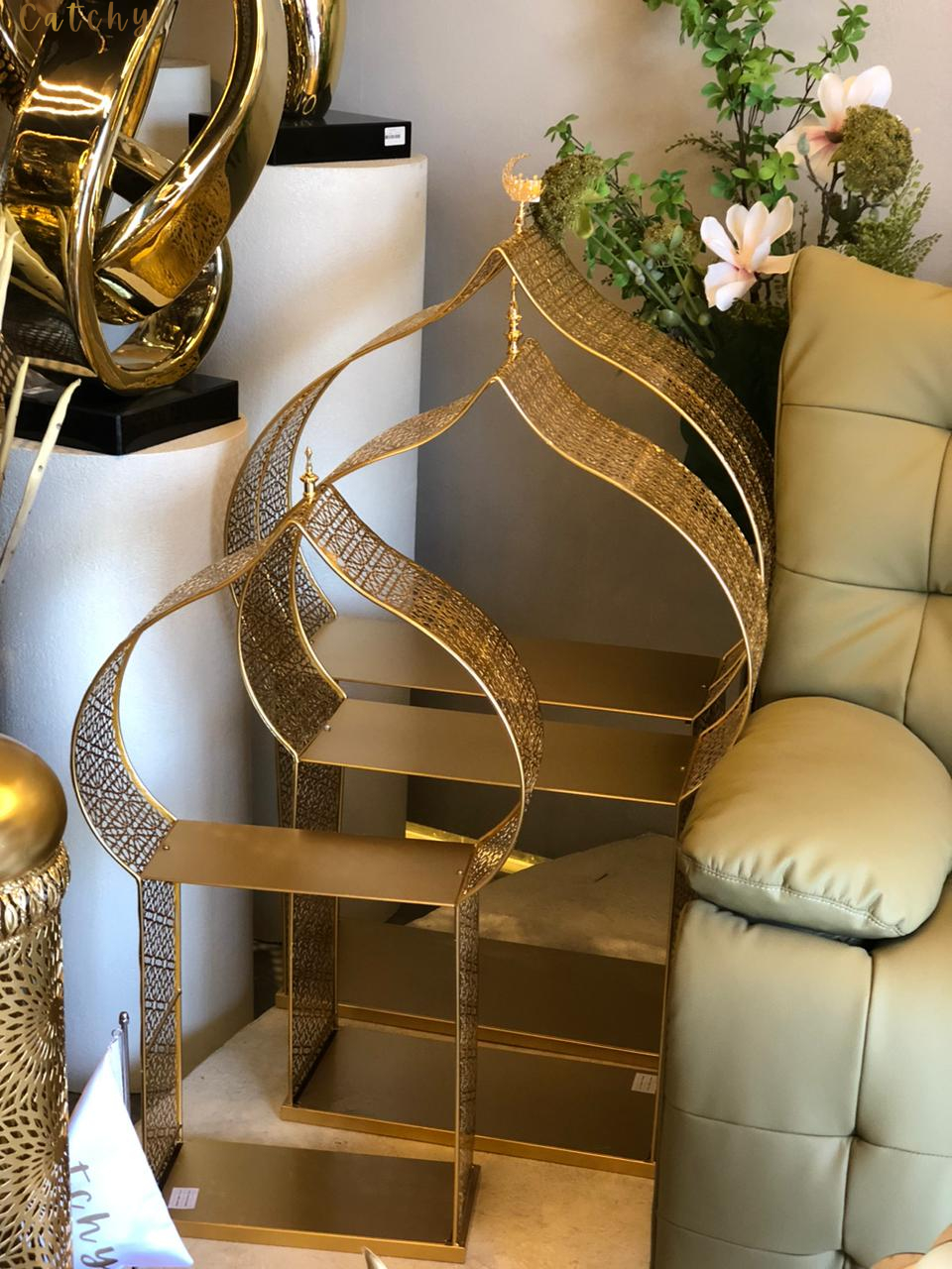 A luxurious Ramadan decorative piece inspired by Islamic architectural arches, designed with layered golden frames that create depth and elegance. The open structure and refined curves make it a perfect statement accent for consoles, entryways, or festive displays during Ramadan and Eid. Its rich gold finish adds warmth and a sophisticated glow to any setting.