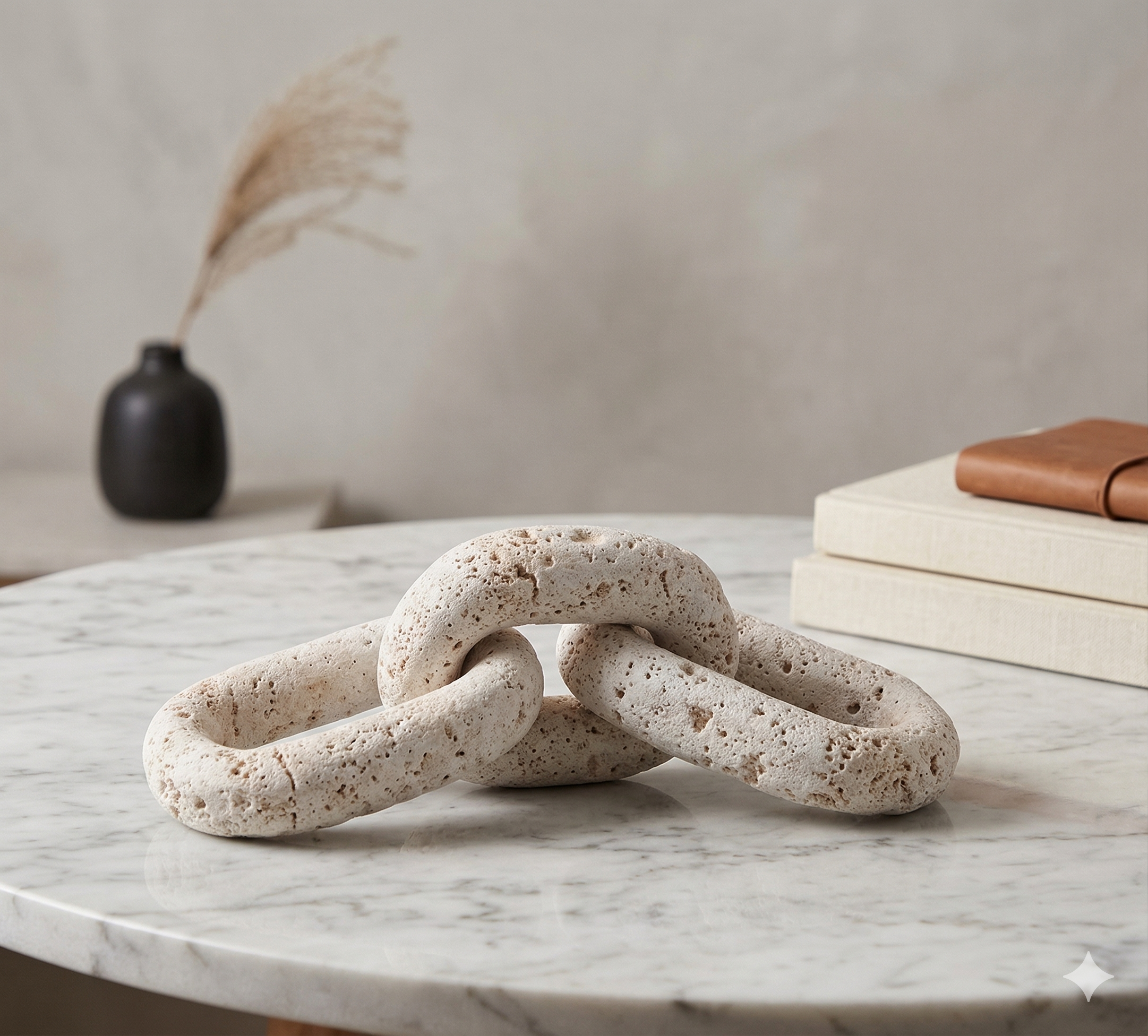 A modern decorative knot sculpture designed with an organic interlinked form that adds depth and visual interest to any space. Crafted in a soft stone-effect finish with natural speckled detailing, this piece brings a sculptural, contemporary touch to shelves, consoles, or coffee tables. Perfect for modern, minimalist, and artistic interiors.