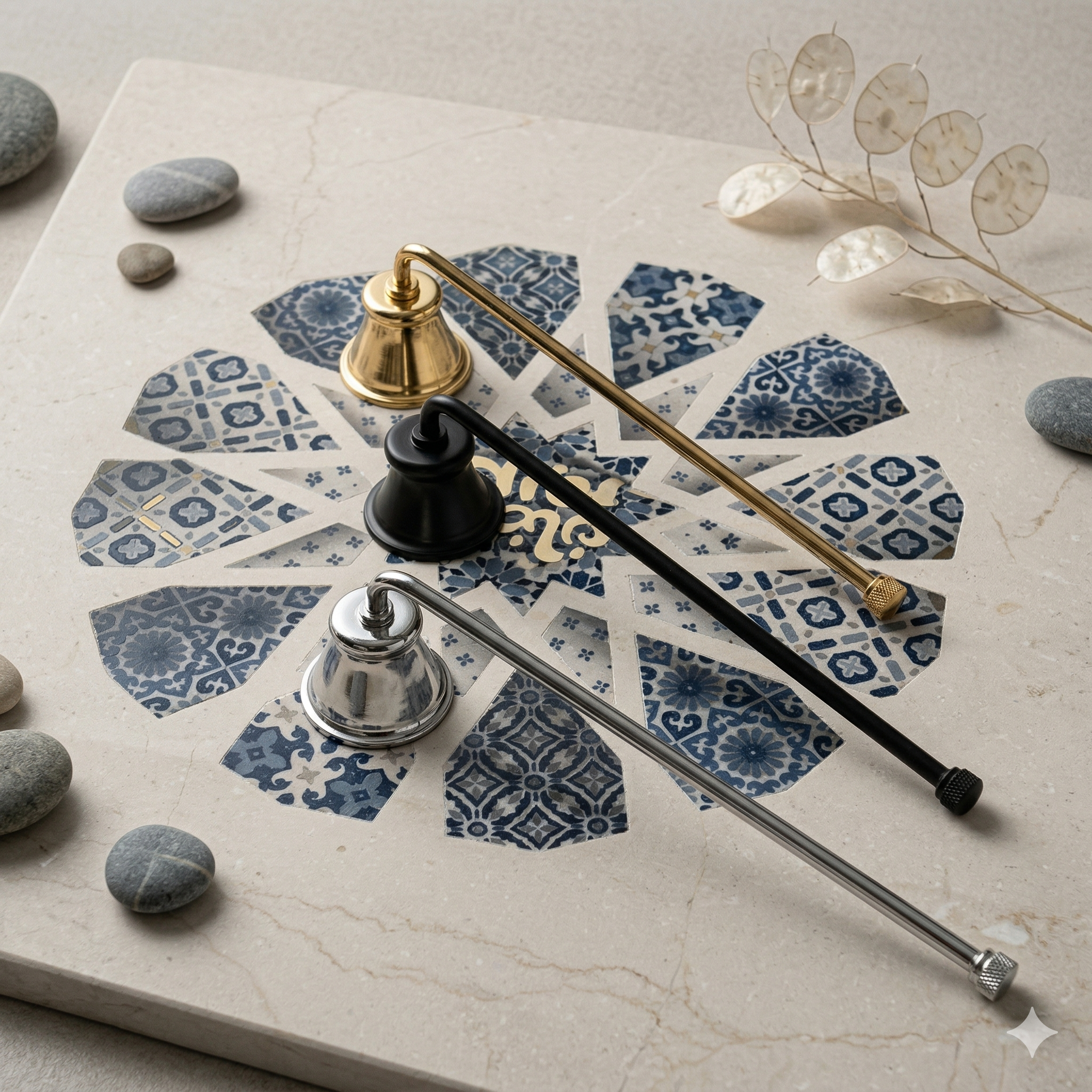 A sleek and practical candle snuffer designed to safely and elegantly extinguish candles without smoke or wax splatter. Featuring a long, slim handle and a classic bell-shaped snuffer, this piece combines functionality with refined style. Available in multiple finishes to suit modern, classic, or luxury interiors, making it a perfect accessory for candle lovers.