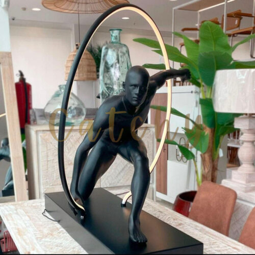 A striking contemporary sculpture featuring a stylized human figure seated on a transparent stool, designed to create a powerful visual statement. Crafted with a smooth, reflective finish, this piece plays with light and transparency, adding depth and artistic intrigue to any space. Perfect for modern interiors, galleries, or statement styling on consoles and shelves.