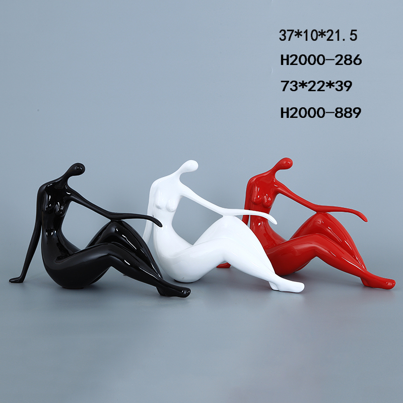 A striking set of decorative sculptures designed in a modern abstract human form, capturing elegance, balance, and artistic expression. Featuring smooth flowing lines and a seated pose, these pieces add a bold contemporary touch to any space. Available in classic black, white, and vibrant red finishes, they are perfect for styling on shelves, consoles, or desks.