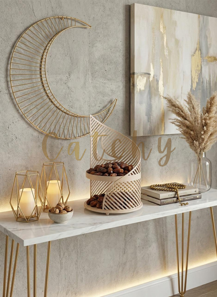 An elegant Ramadan tray designed to combine practicality with festive charm. Featuring a refined silhouette inspired by Islamic motifs, this tray is perfect for serving dates, sweets, or small treats during Iftar and Suhoor. Its clean design and balanced proportions also make it a beautiful decorative accent for tables, consoles, or coffee corners throughout the holy month.