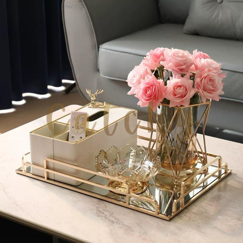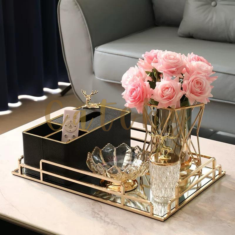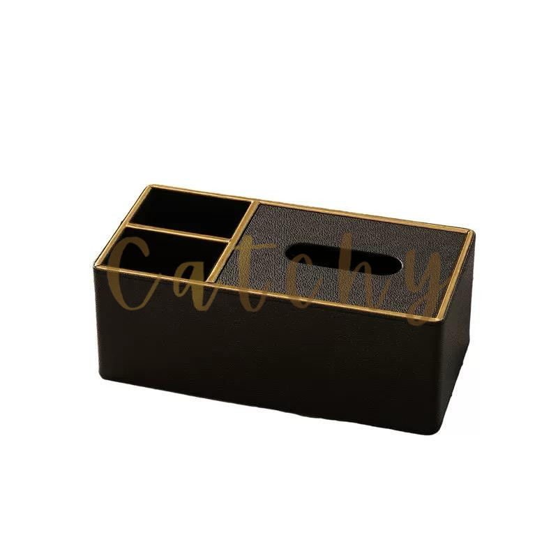 This organizer box crafted from premium PU leather with gold metal detailing adds an elegant touch to your coffee table or bedside.