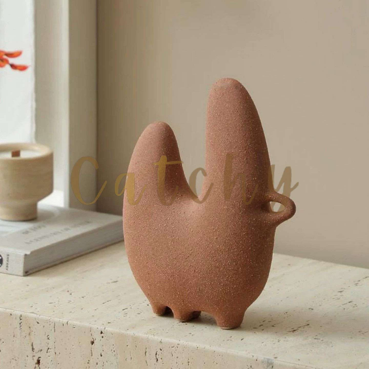 A minimalist Scandinavian terracotta sculpture with a sandy matte texture