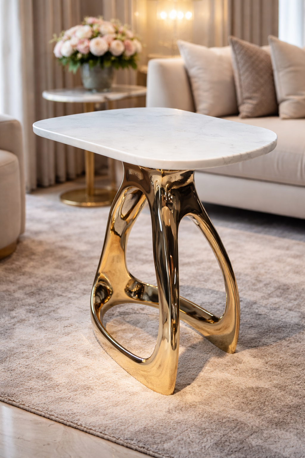 A sophisticated side table curated for functional elegance and refined styling. Designed to complement luxury interiors, it offers a perfect balance of form and purpose—ideal beside sofas, armchairs, or as an accent in curated spaces.