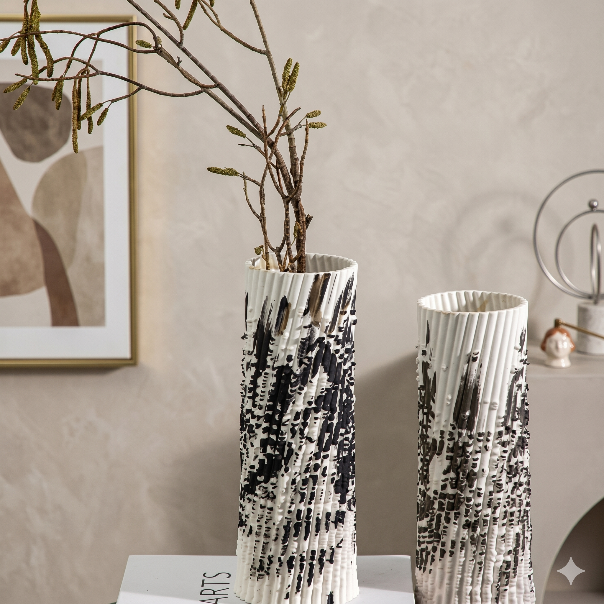 An artistic vase inspired by natural textures and refined craftsmanship. Designed to add warmth and character, this piece blends effortlessly into boho-inspired and contemporary spaces alike. A decorative accent that brings depth, authenticity, and understated luxury to curated interiors.