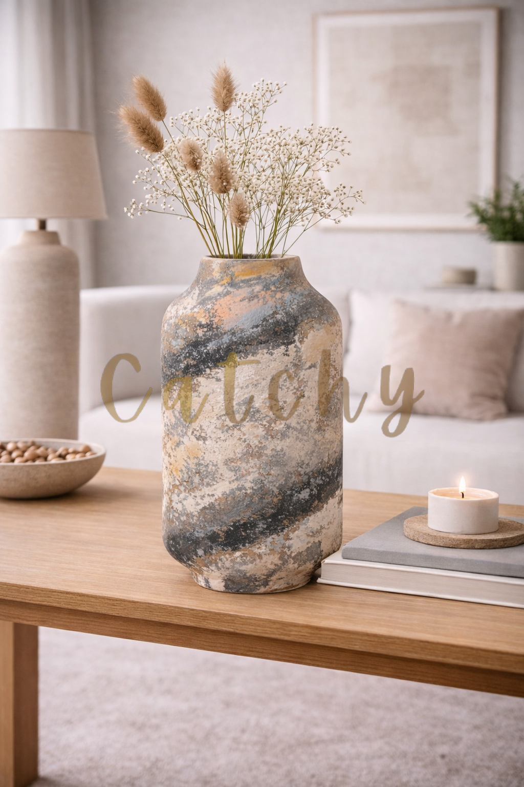An artistic vase inspired by natural textures and refined craftsmanship. Designed to add warmth and character, this piece blends effortlessly into boho-inspired and contemporary spaces alike. A decorative accent that brings depth, authenticity, and understated luxury to curated interiors.